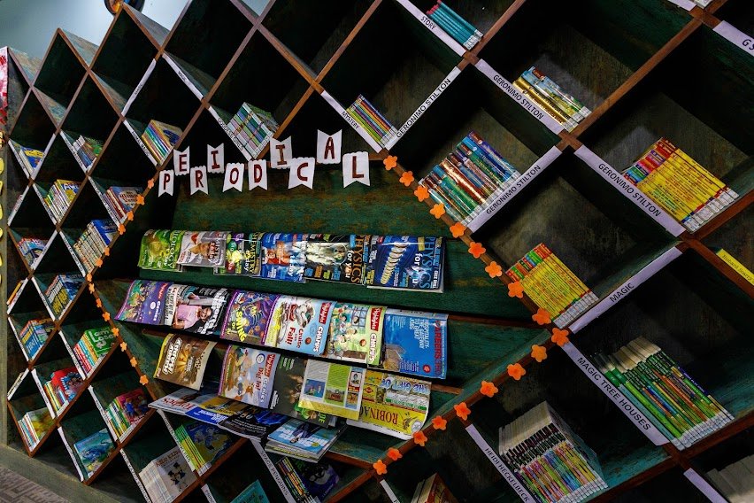 Our Learning Resource Centre, strategically placed at the heart of the Academic Block provides a welcoming environment to explore and satisfy the thirst for learning. It offers a variety of large and flexible spaces across 5 levels to fulfil different needs. There are quiet corners to read, study and reflect. There are spaces allocated for presentation, storytelling and so on to share knowledge and enjoy. With a rich collection of books, other resources and digital content, it motivates students to develop a passion for reading and helps them become critical thinkers. It is a place where the library staff, teachers and students work collaboratively to gather, share and create information.